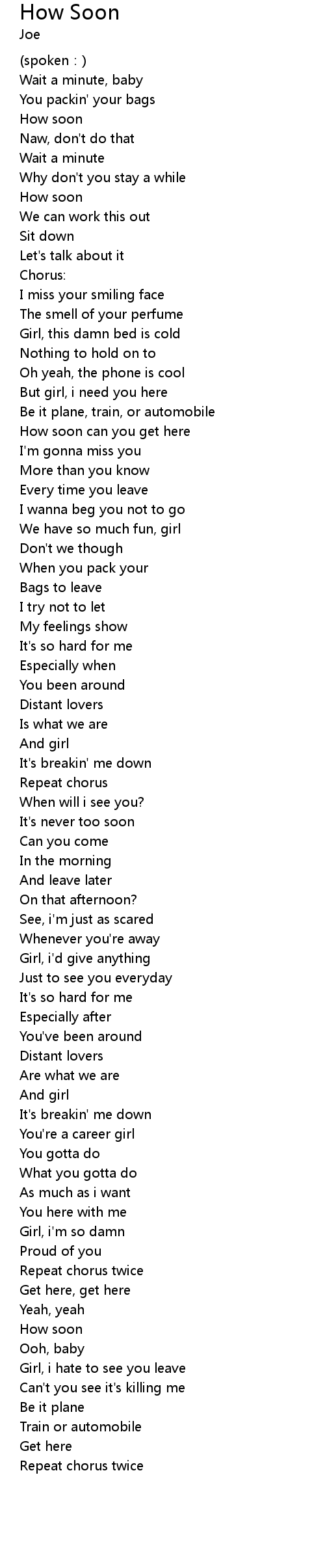 | 歌曲 | How Soon |