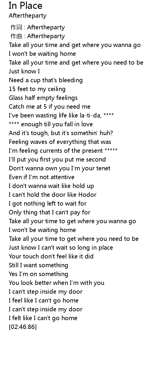 | [00:01.000] | zuò qǔ : Aftertheparty |