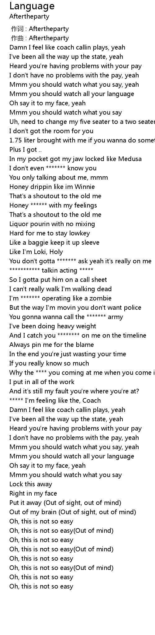 | [00:33.25] | Mmm you should watch what you say, yeah |