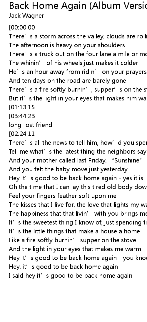 | [04:00.22] | Hey it’s good to be back home again - you know it is |