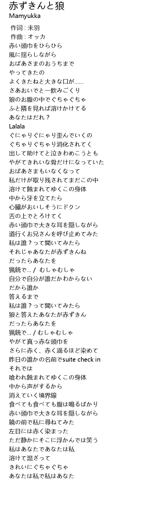 | [03:09:41] | 赤い頭巾で大きな耳を隠しながら |