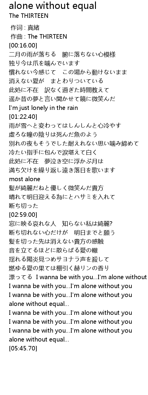 | [05:15.50] | I wanna be with you I' m alone without you |