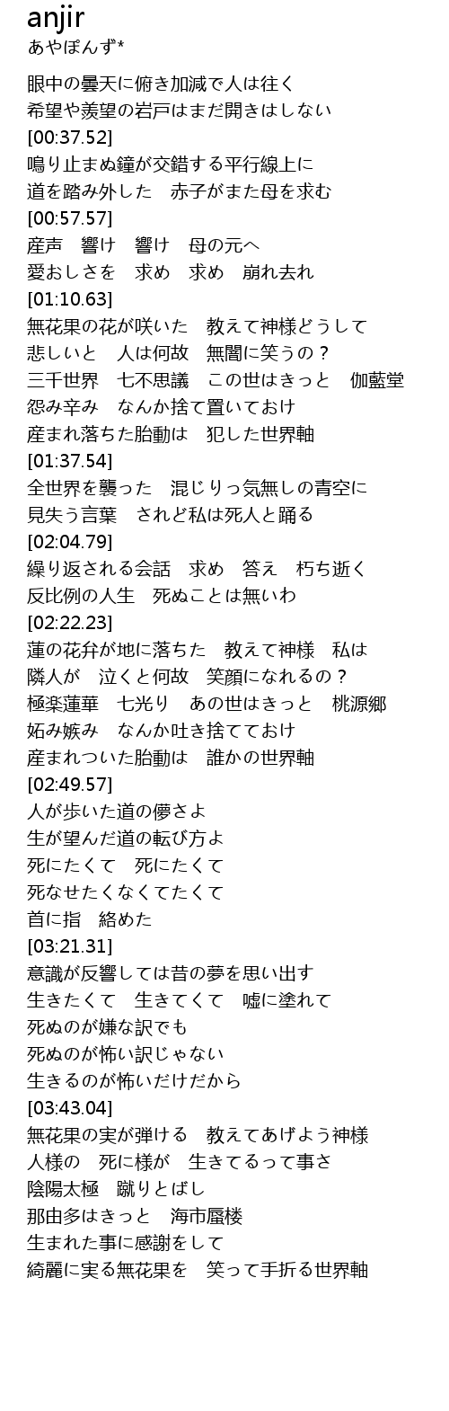 | [03:37.69] | 死ぬのが怖い訳じゃない |