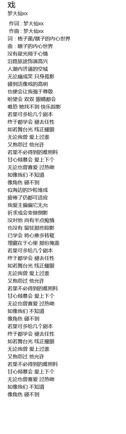 | [00:00.000] | 作词 : 梦大仙xx |