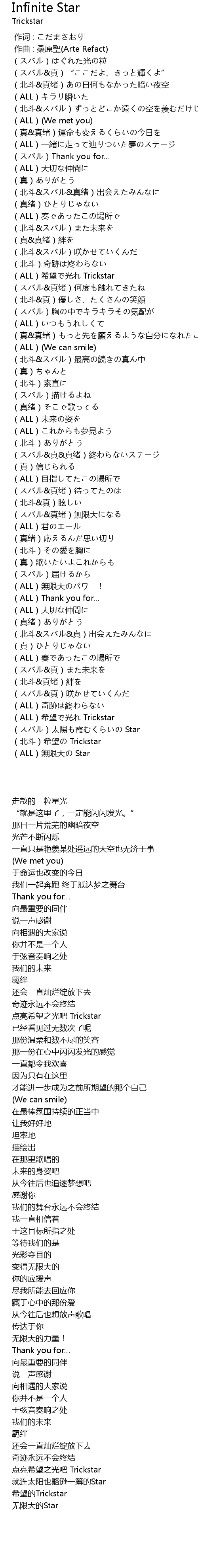 | [04:17.22] | ALL xī wàng guāng Trickstar |