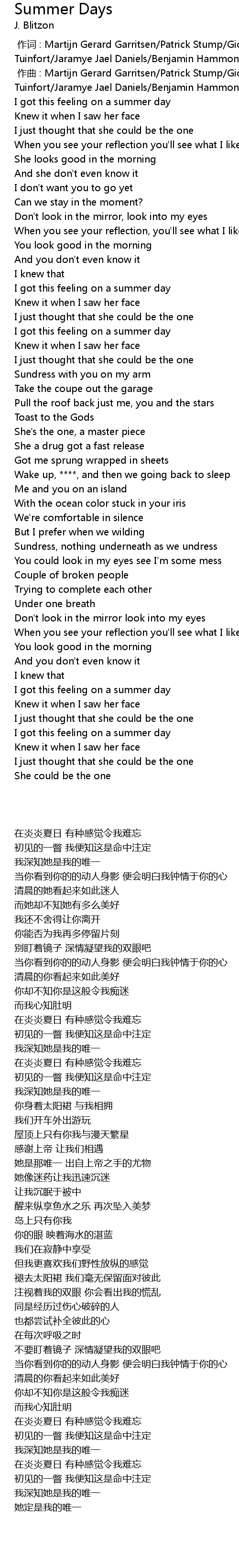 | [00:01.102] | 在炎炎夏日 有种感觉令我难忘 |