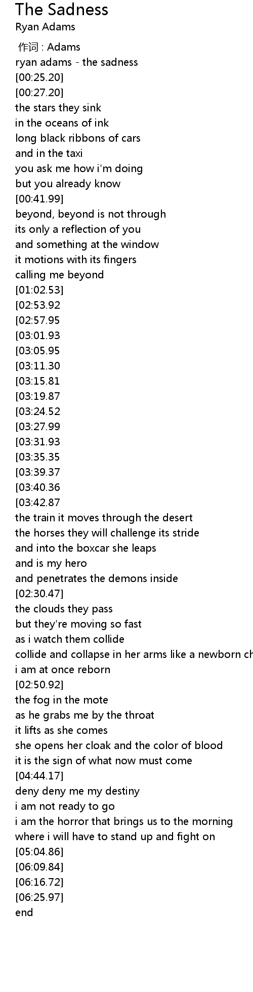 | [00:00.00] | ryan adams - the sadness |