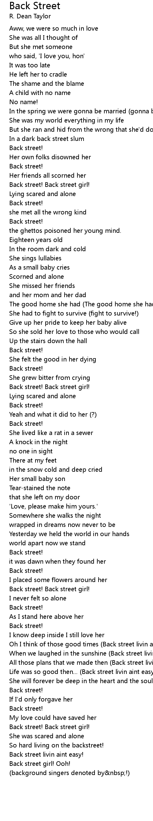 Back street girl! Ooh! |