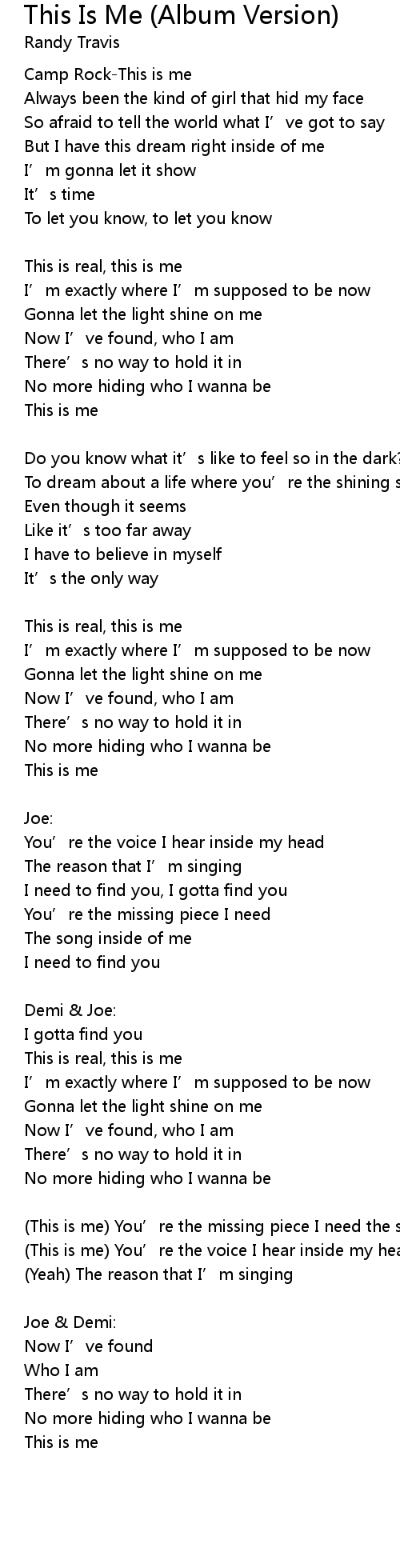 | This is me You' re the missing piece I need the song inside of me | |