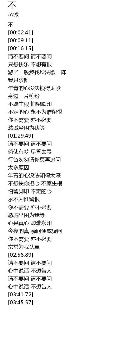 | [02:59.96] | qing bu yao wen qing bu yao wen |