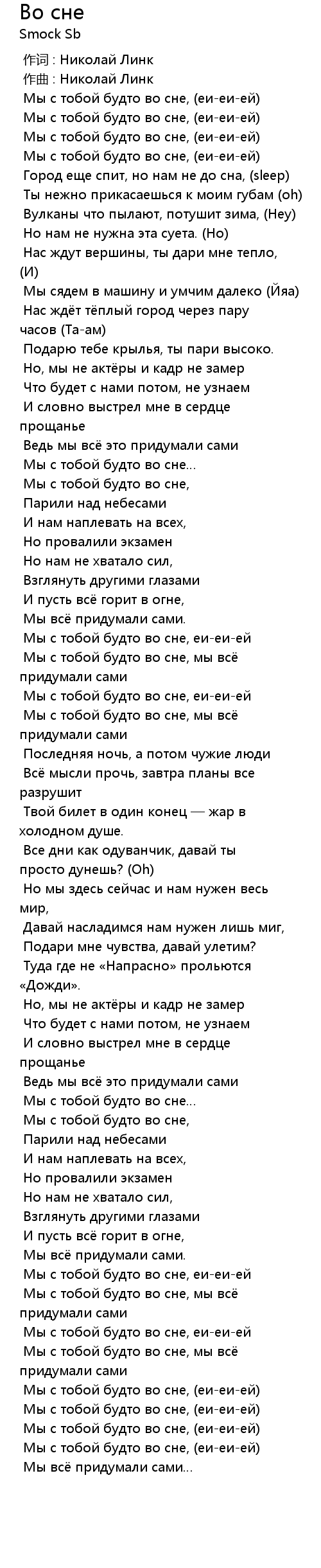 Во сне 歌词
