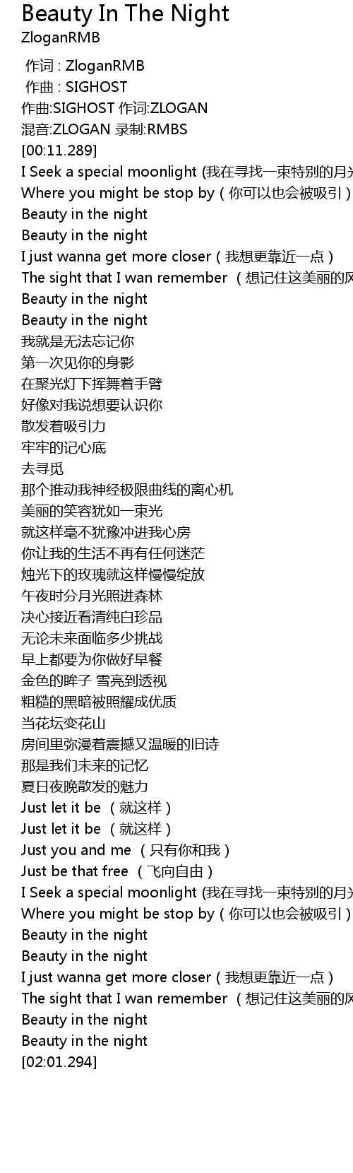| [01:42.936] | Beauty in the night |