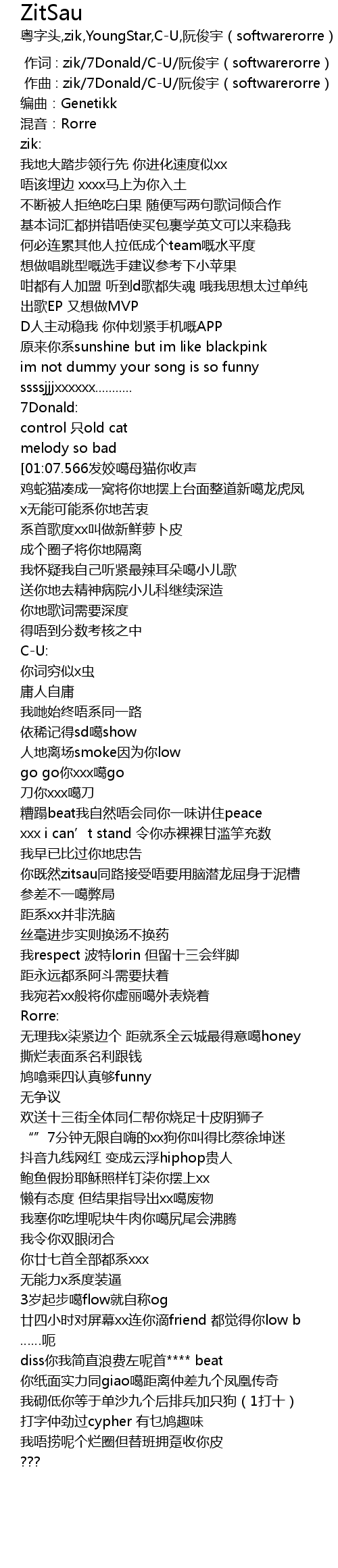 | [02:36.147] | 打字仲劲过cypher 有乜鸠趣味 |