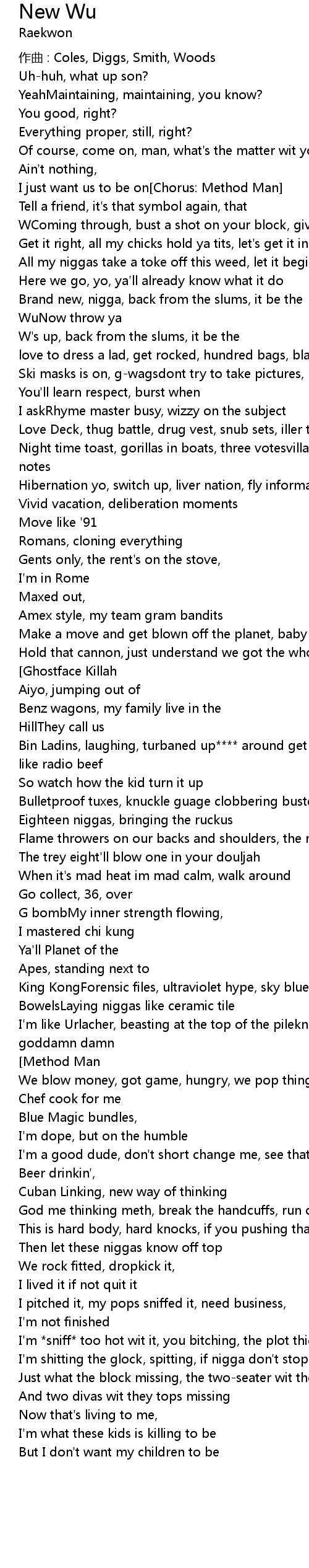 | 歌手 | Raekwon |
