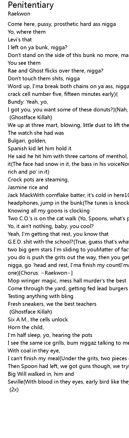 G.E.D. shit with the school?(True, guess that's what it doBut on the low I got two big gem stars I'm sliding to youMatter of fact they gon' hide in ya foodAll you do is push the grits out the way, then you get up and moveGo to sleep, nigga, go 'head and rest, I'ma finish my countI'ma set you out, later my dude, one)[Chorus: ~Raekwon~] |