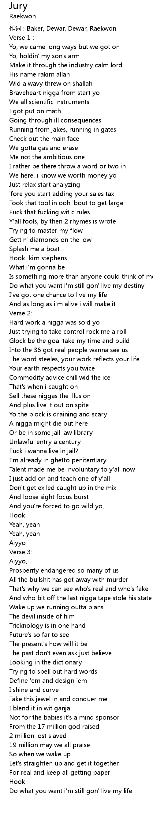 | 作词 : Baker, Dewar, Dewar, Raekwon | |