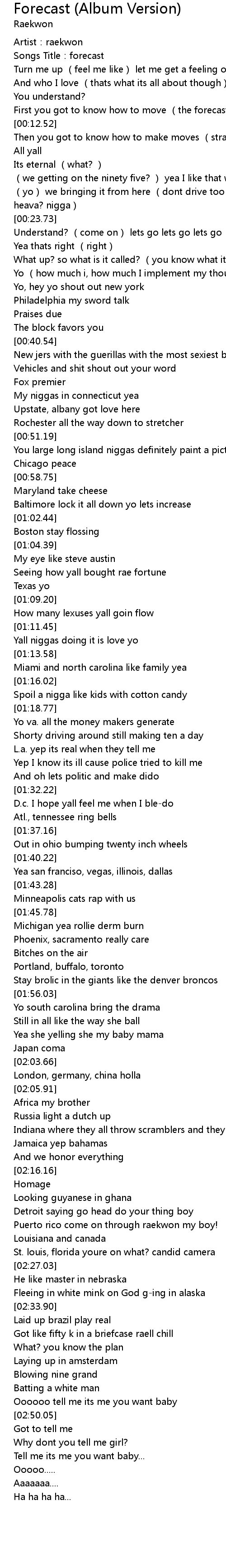 | [00:08.59] | First you got to know how to move the forecast calls for... |
