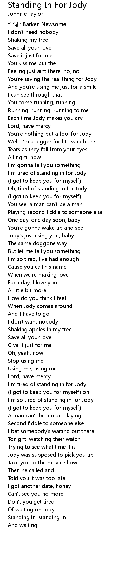| 歌曲 | Standing In For Jody |