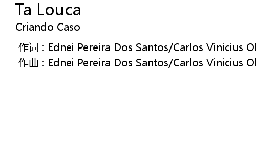 | [00:00.000] | zuo ci : Ednei Pereira Dos Santos Carlos Vinicius Oliveira da Silva |