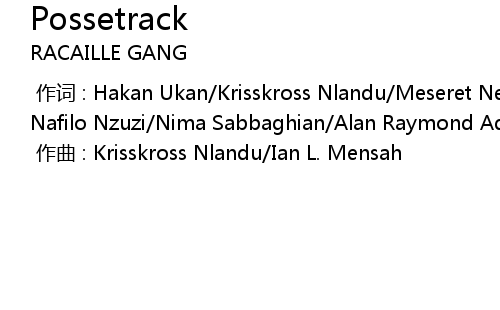 | [00:00.000] | 作词 : Hakan Ukan/Krisskross Nlandu/Meseret Negassi Araia/Dorys Nafilo Nzuzi/Nima Sabbaghian/Alan Raymond Adams/Nekula Luvetama/Klinsmann Jovete |