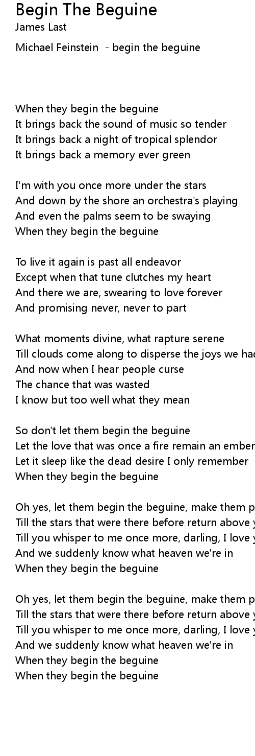 Oh yes, let them begin the beguine, make them play |