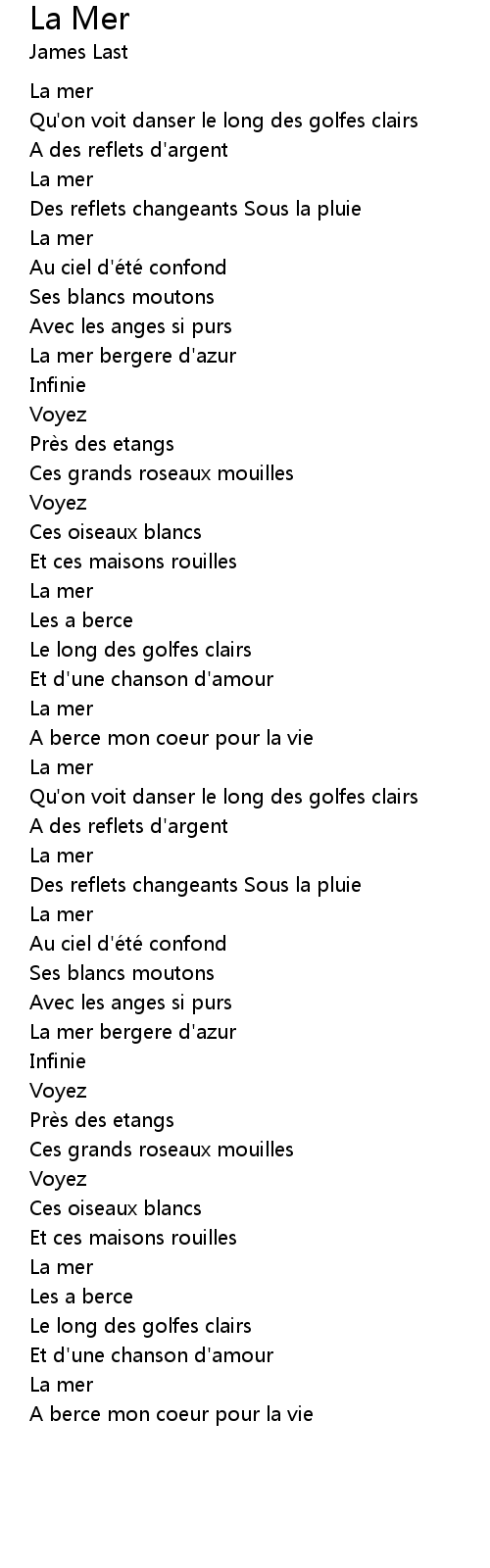 | [00:14.01] | Qu'on voit danser le long des golfes clairs |