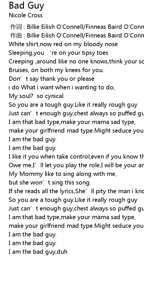 | 歌曲 | Bad Guy |