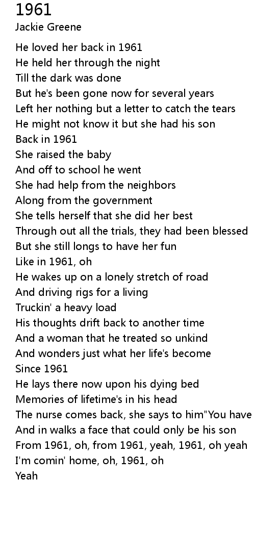From 1961, oh, from 1961, yeah, 1961, oh yeah |
