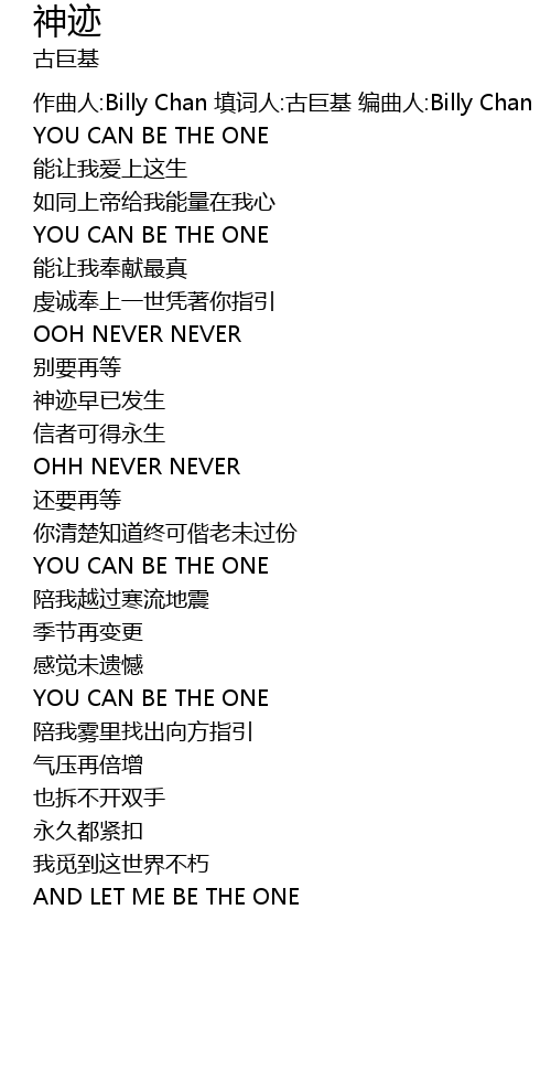 | [00:03.16] | 作曲人:Billy Chan 填词人:古巨基 编曲人:Billy Chan |