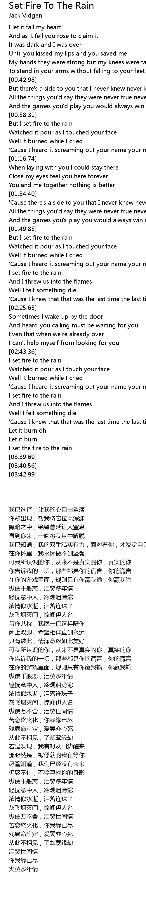 But I set fire to the rain |
