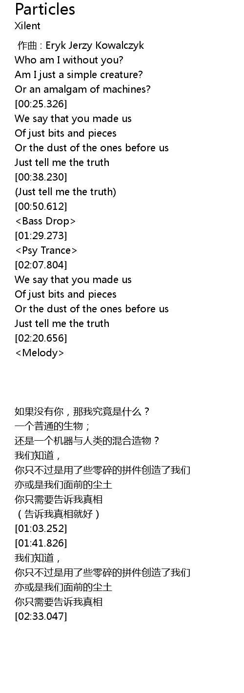 | [00:30.080] | 你只不过是用了些零碎的拼件创造了我们 |