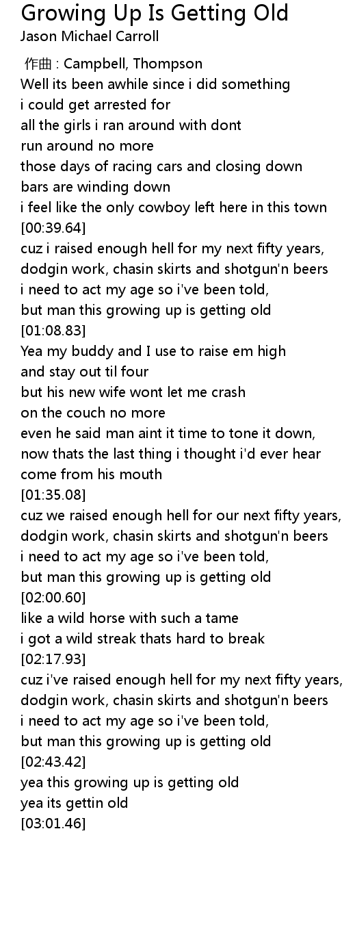 | [00:59.21] | but man this growing up is getting old |