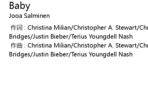 | [00:00.000] | 作曲 : Christina Milian/Christopher A. Stewart/Christopher Brian Bridges/Justin Bieber/Terius Youngdell Nash |