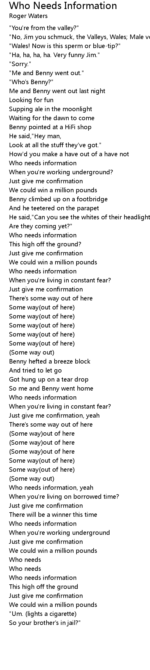 Who needs information, yeah |