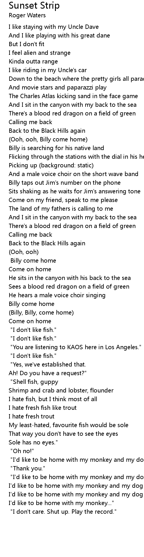 [Woman:] "I'd like to be home with my monkey and my dog |
