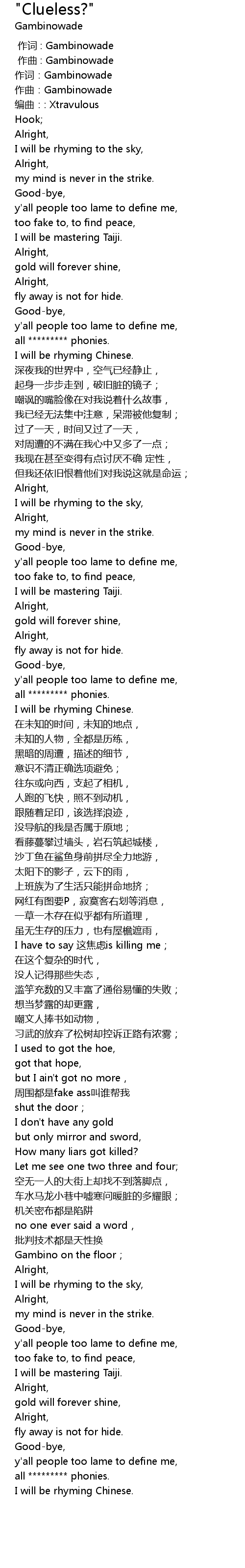 | [00:01.000] | zuò qǔ : Gambinowade |