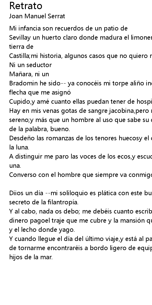 | Hay en mis venas gotas de sangre jacobina, pero mi verso brota de manantial sereno y má s que un hombre al uso que sabe su doctrinasoy, en el buen sentido de la palabra, bueno. | |