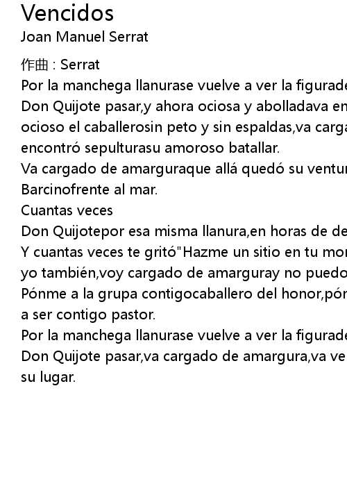 | Don Quijote pasar,va cargado de amargura,va vencido el caballeroque retornó a su lugar. |