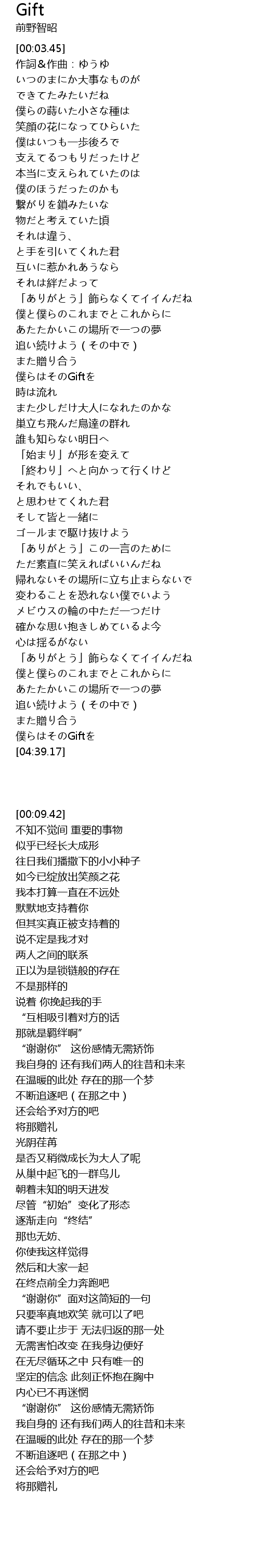 | 歌曲 | Gift |