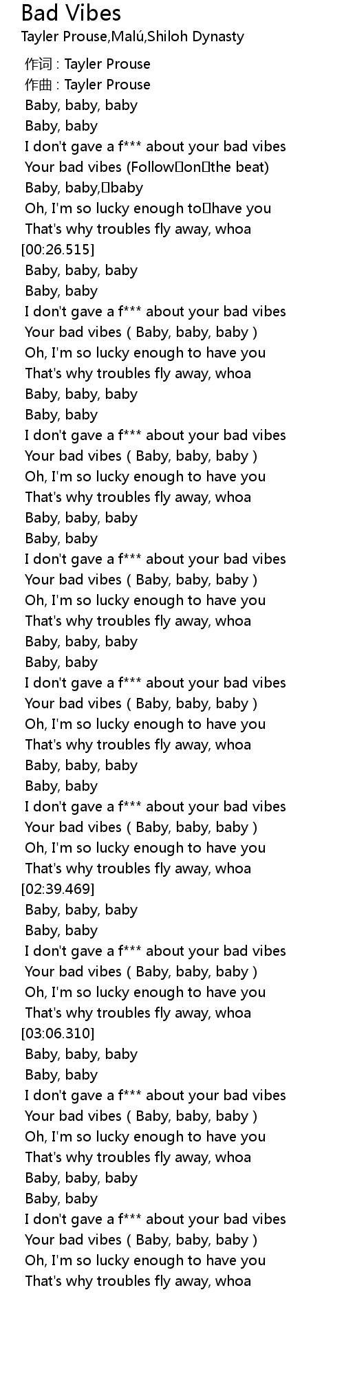 | [02:22.733] | Your bad vibes Baby, baby, baby |