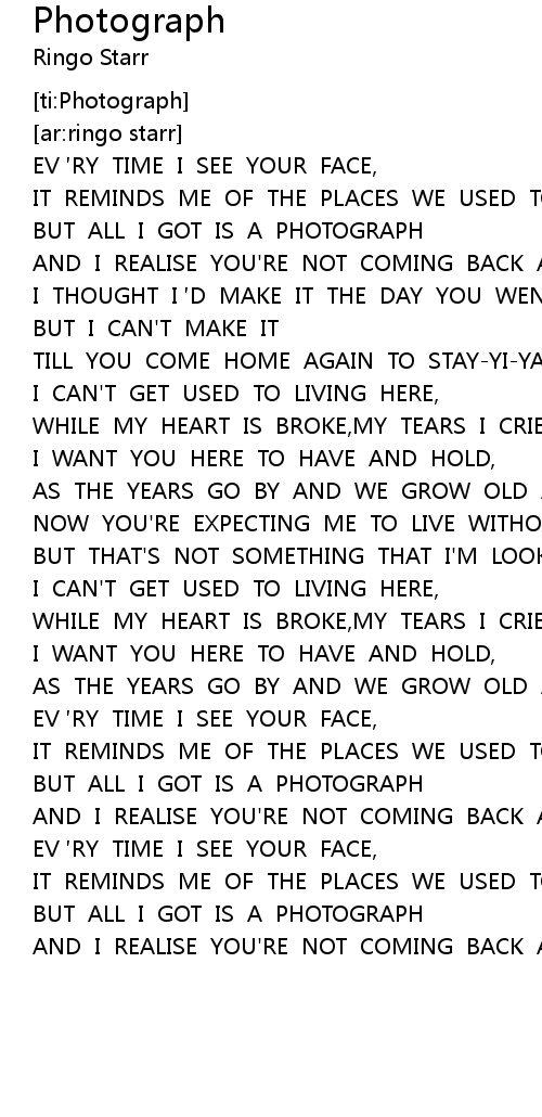 | [00:28.51] | BUT ALL I GOT IS A PHOTOGRAPH |