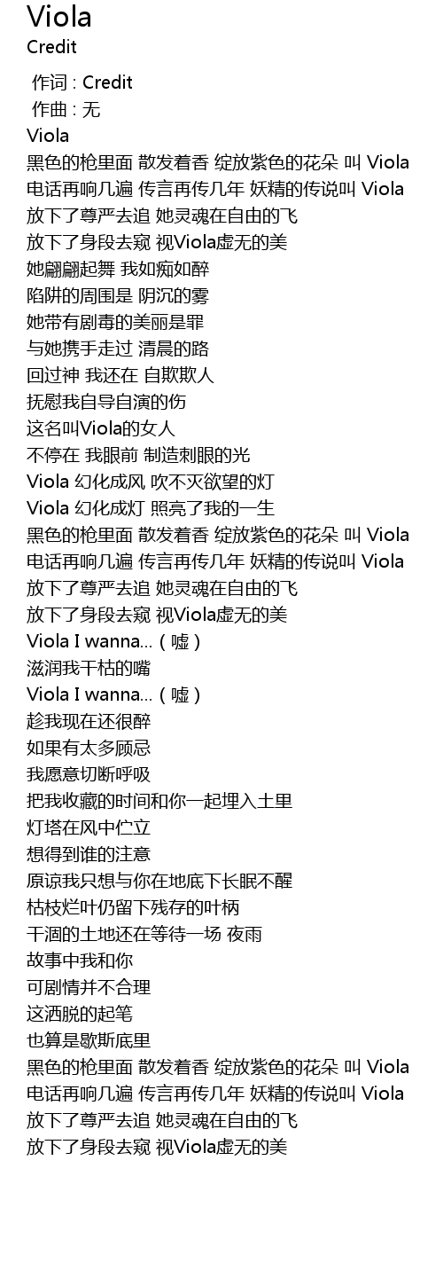 | [00:41.941] | 放下了身段去窥 视Viola虚无的美 |