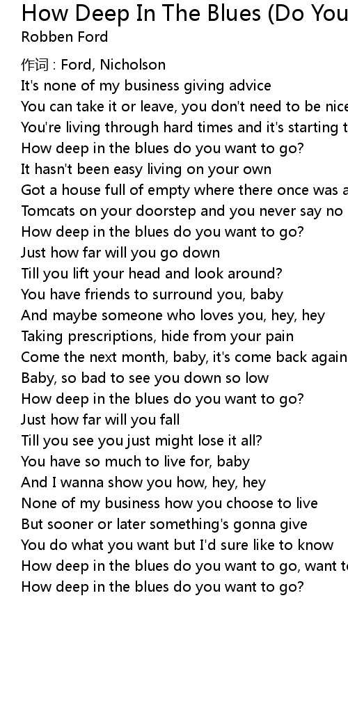| How deep in the blues do you want to go, want to go? | |