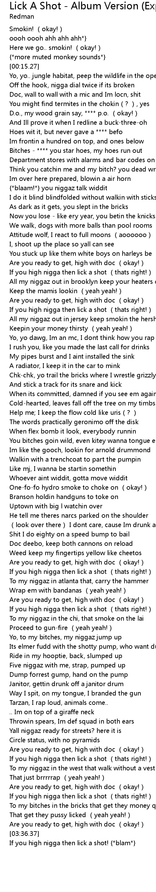 | [03:37.03] | If you high nigga then lick a shot! blam |