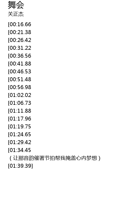 | [01:57.95][00:16.66] | 舞会中与她遇上那容貌仿像天上降 |