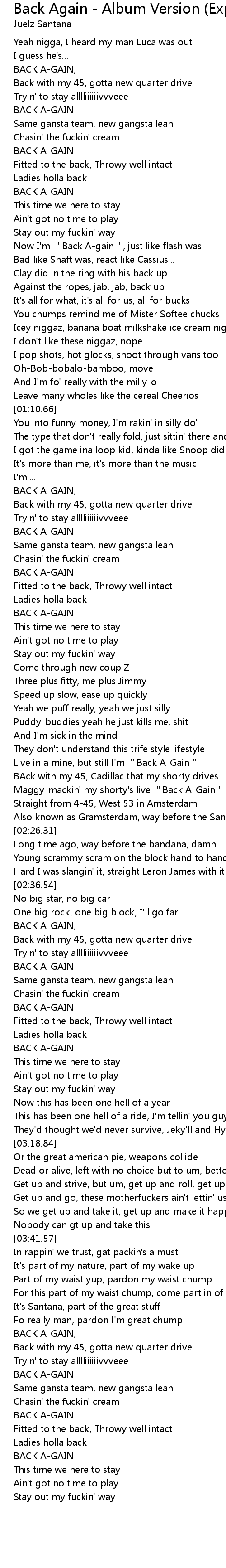 | 歌曲 | Back Again - Album Version (Explicit) |
