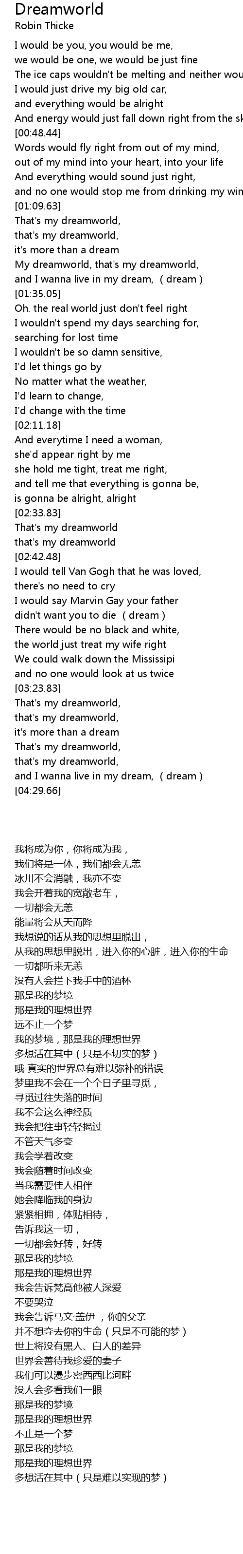 | [01:22.73] | My dreamworld, that' s my dreamworld, |
