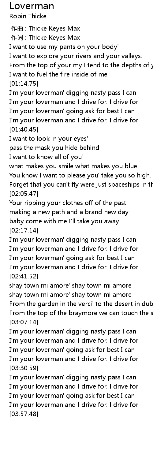 | [03:36.69] | I'm your loverman and I drive for. I drive for |
