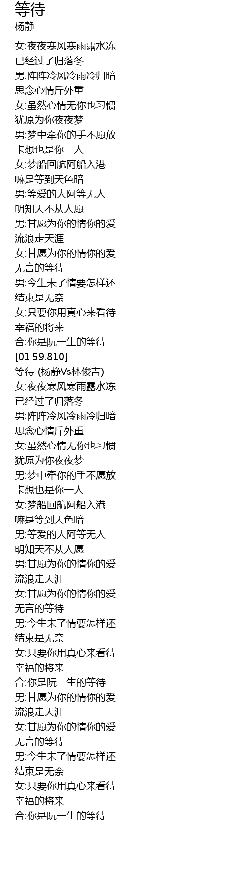 [02:05.260] 等待 (杨静Vs林俊吉)
