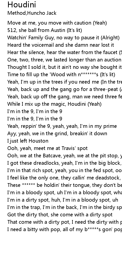| [00:54.57] | While I mix up the magic, Houdini (Yeah) |